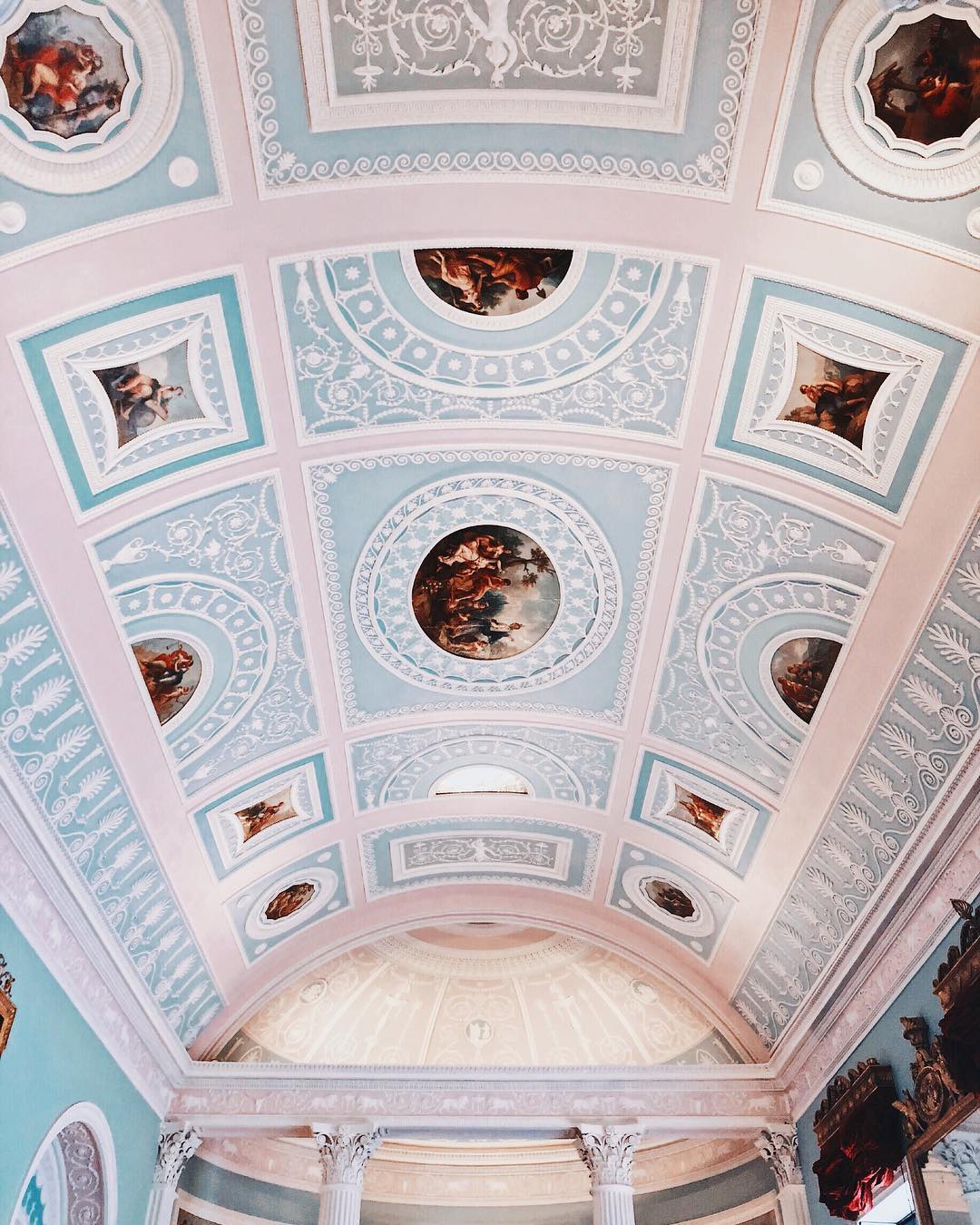 名画も素敵だったのですが、一番印象的で素敵だったのは、図書室エリアでした。内部の装飾が本当に美しく、特にパステルカラーに色どられる天井は息をのむ美しさです。 それほど広いものではないのですが、品の良い図書室で、図書室好きにはぐっときました。