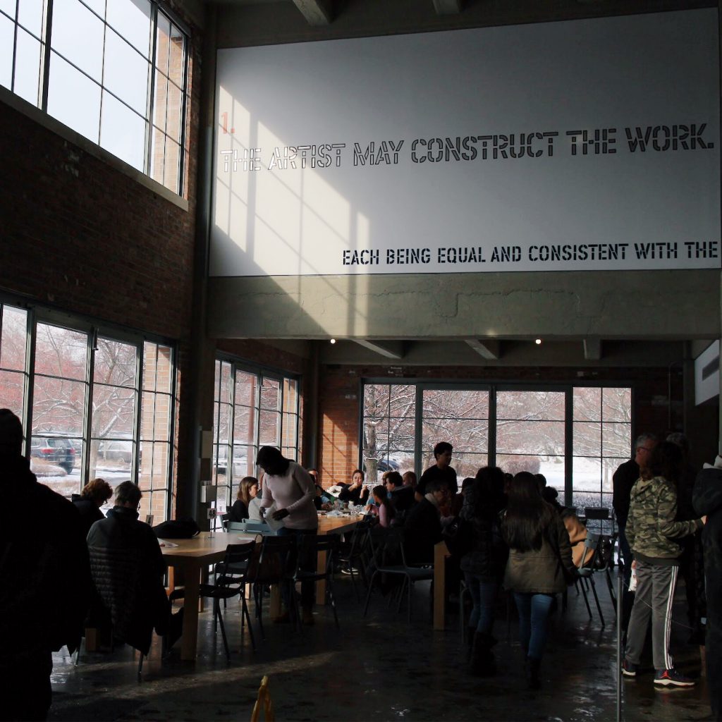 中にはカフェスペースがあり、軽食と飲み物が用意されていました。周りにお店が少ないため、かなりの人々が並んでいました。 その隣にはブックストアもついていて様々なジャンルのアート本が多く置かれていました。